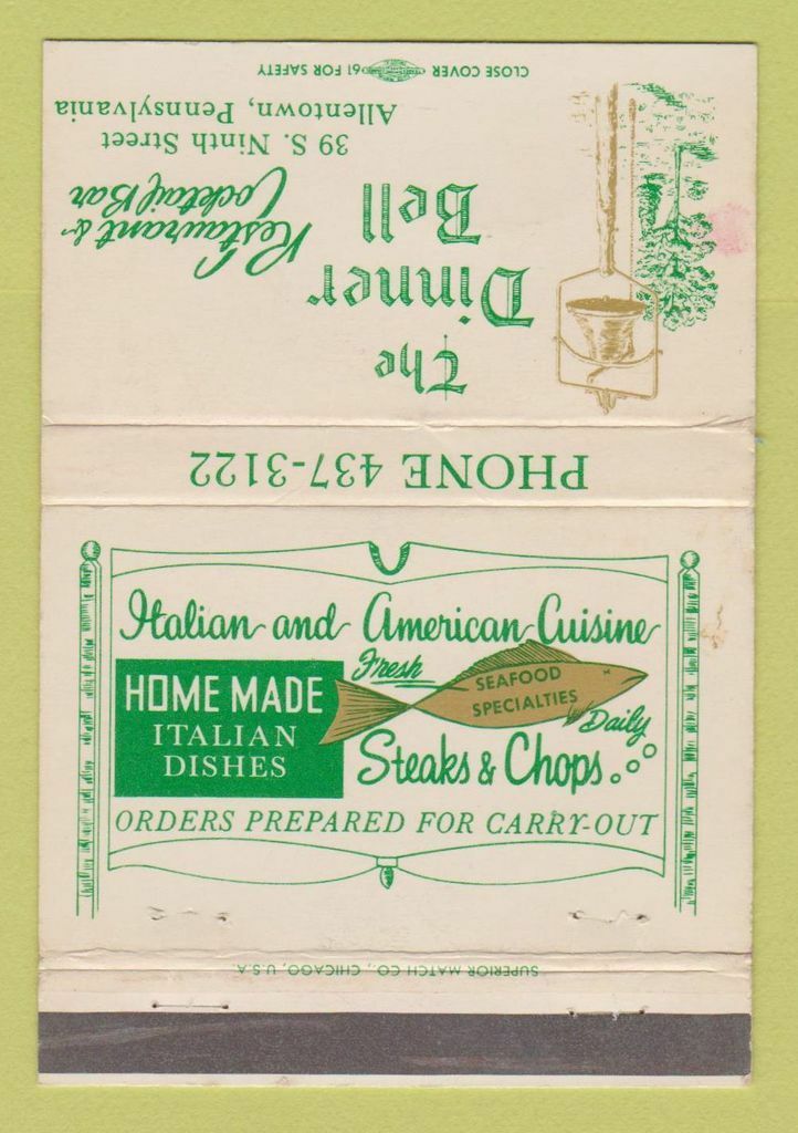 Matchbook Cover The Dinner Bell Italian Restaurant Allentown Pa Wron 40 Strike Ebay